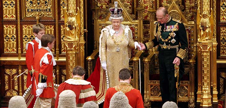 Pictured above: Queen Elizabeth II with Prince Philip at the State Opening of Parliament, November 2004. Pictured top: Queen Elizabeth II travelling to the State Opening of Parliament in a horse-drawn carriage, December 2008.